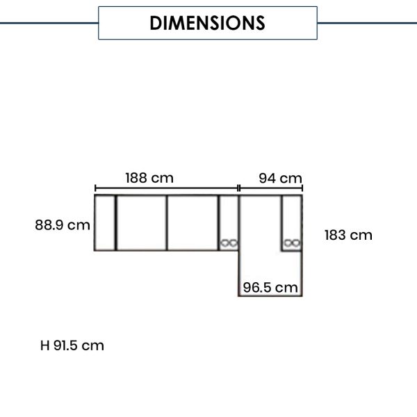 W282 x D88.9/183 x H91.5 cm