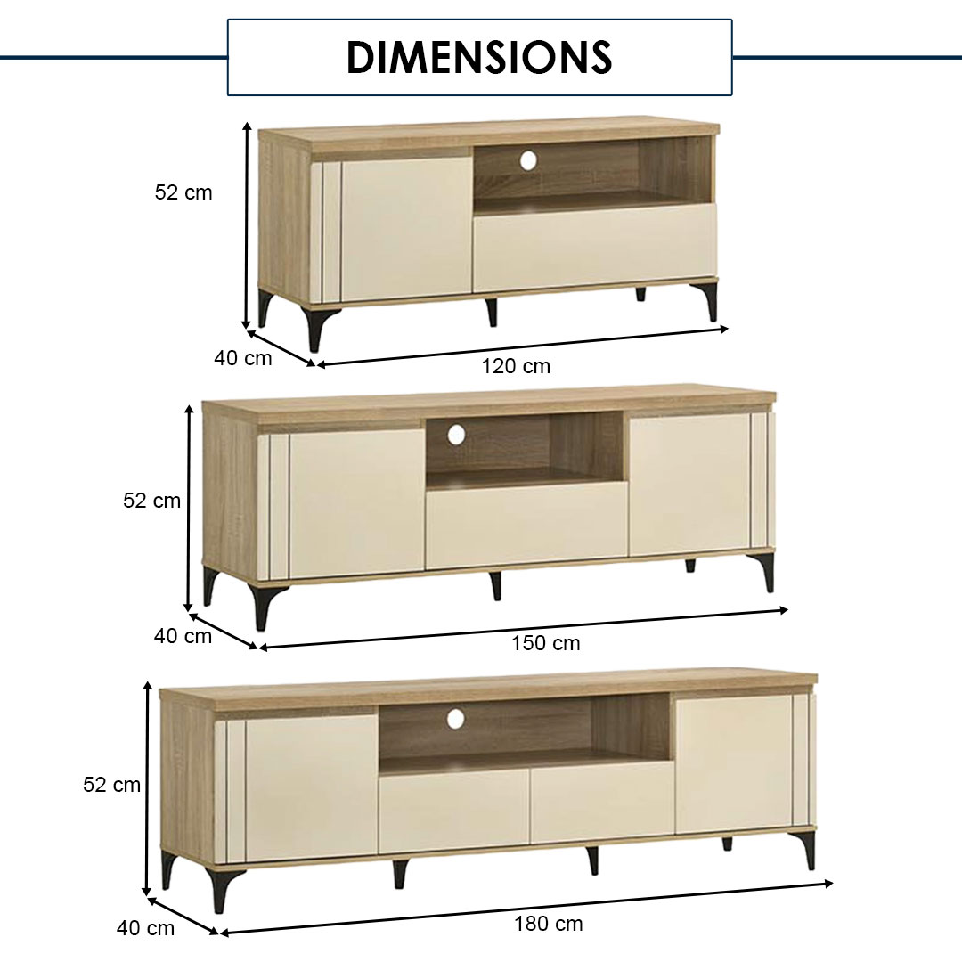 – L150 x D40 x H52 cm